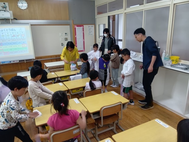4月21日(火)1年生の給食がはじまりました。今日のメニューはえがおのカレーシチ...